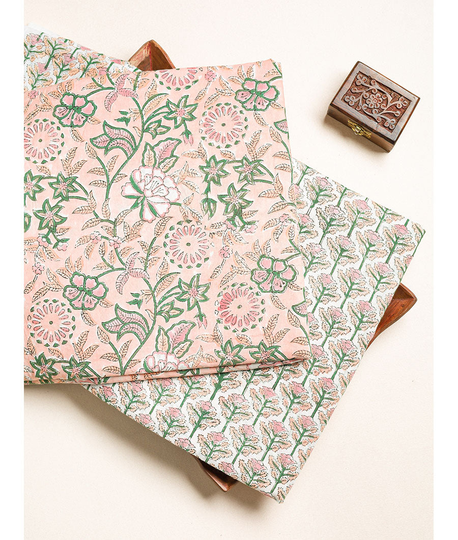 Beautiful pure cotton Handblock printed fabrics. This cotton fabric is soft & breathable. Wooden blocks carved with intricate details that usually cover the entire length of a fabric, Now with beautiful and colorful prints all over. Pure cotton fabrics are known for their comfort and excellent breathability and softness.